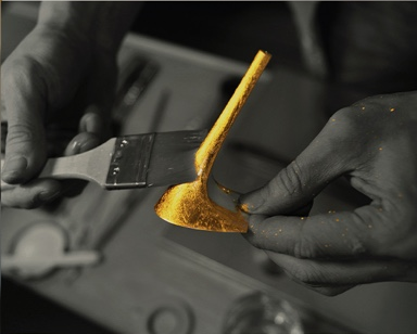 Founder and chief creator, Bertrand Mak moves between sculpture, mixed media, sculpture, and wearable art, united by his signature use of 24-carat gold leaf.